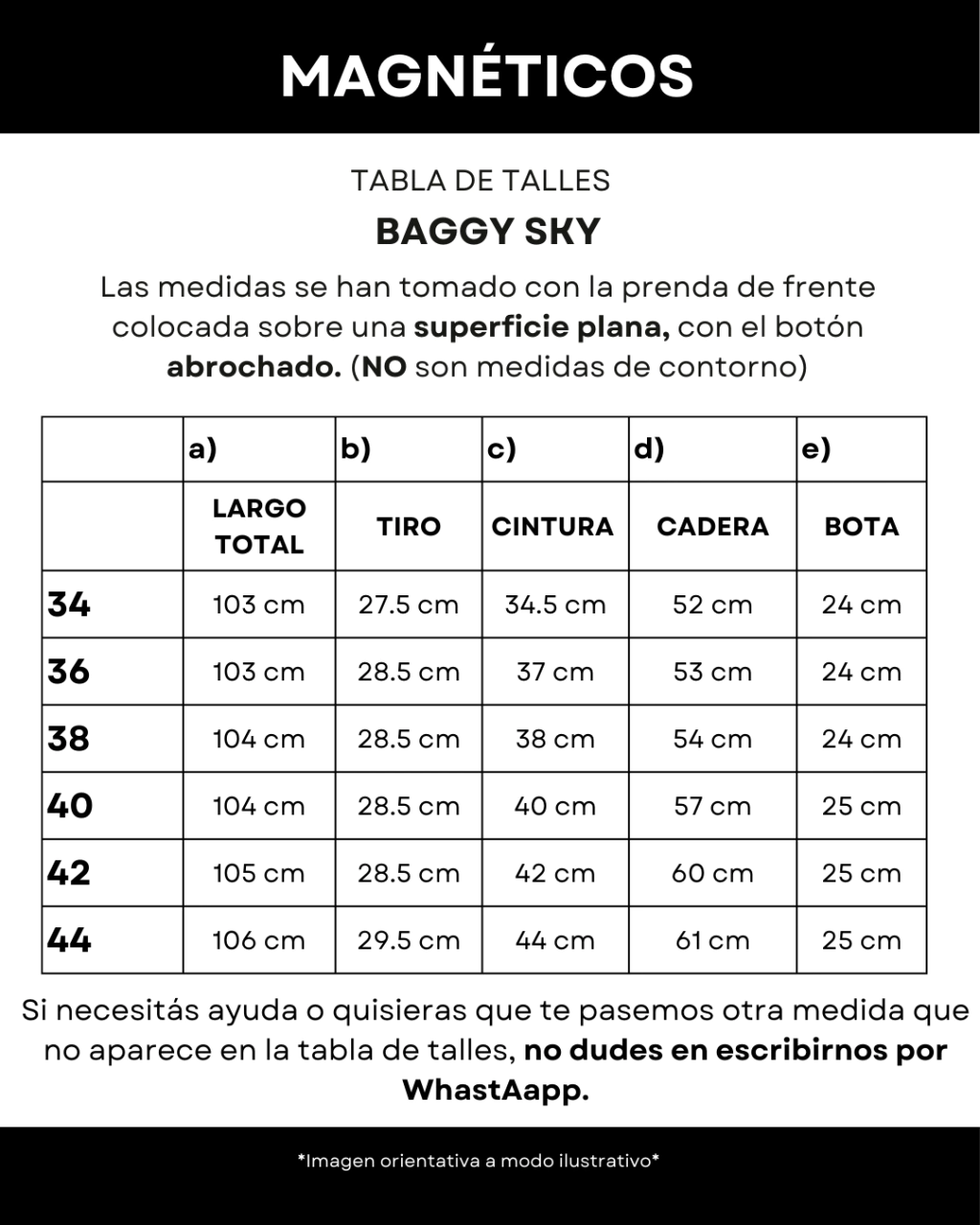 El BAGGY SKY tiene tiro medio, fit baggy y largo full length, perfecto para lograr ese equilibrio entre estilo relajado y silueta canchera.n